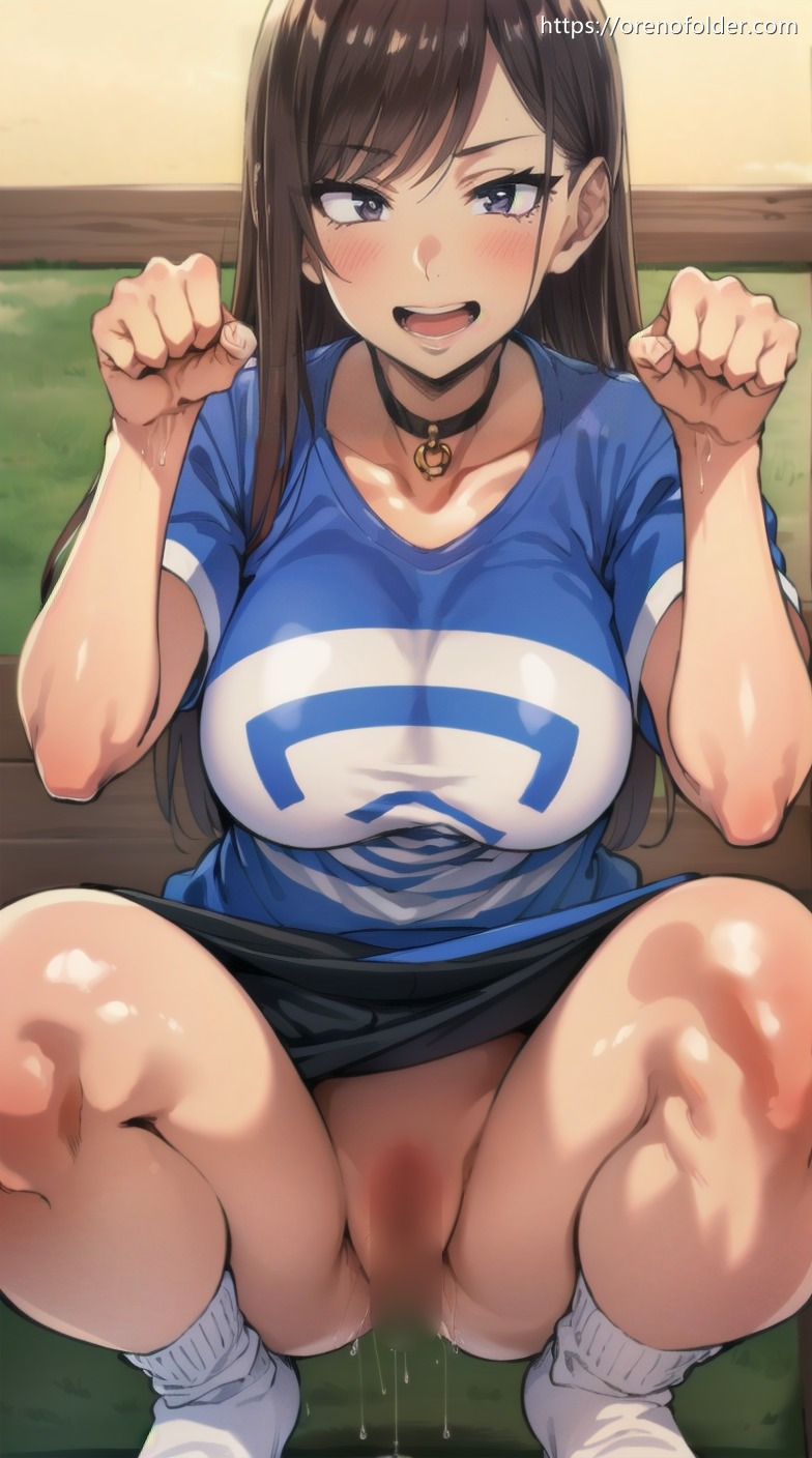 おっぱい, コスプレ, たくし上げ, チアガール, チアリーダー, ニーソ, へそ, ポロリ, むちむち, 巨乳, 巨乳輪, 濡れ, 爆乳, 着衣, 絶対領域, 茶髪, 野外