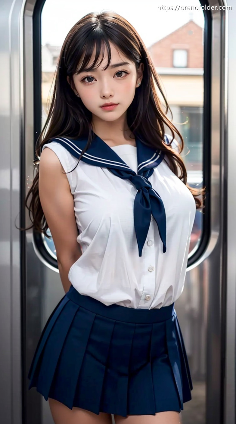 jk, セーラー服, セミロング, ミニスカ, 制服, 太もも, 巨乳, 爆乳, 生足, 着衣, 着衣巨乳, 美脚, 茶髪