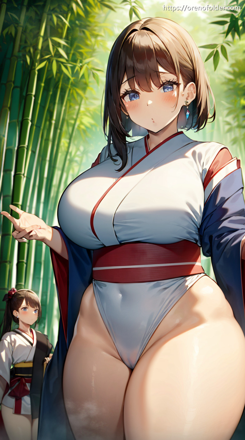 おっぱい, たくし上げ, ハイレグ, ポニーテール, むちむち, 前屈み, 半脱ぎ, 巨乳, 巨乳輪, 微笑, 爆乳, 白, 茶髪, 青