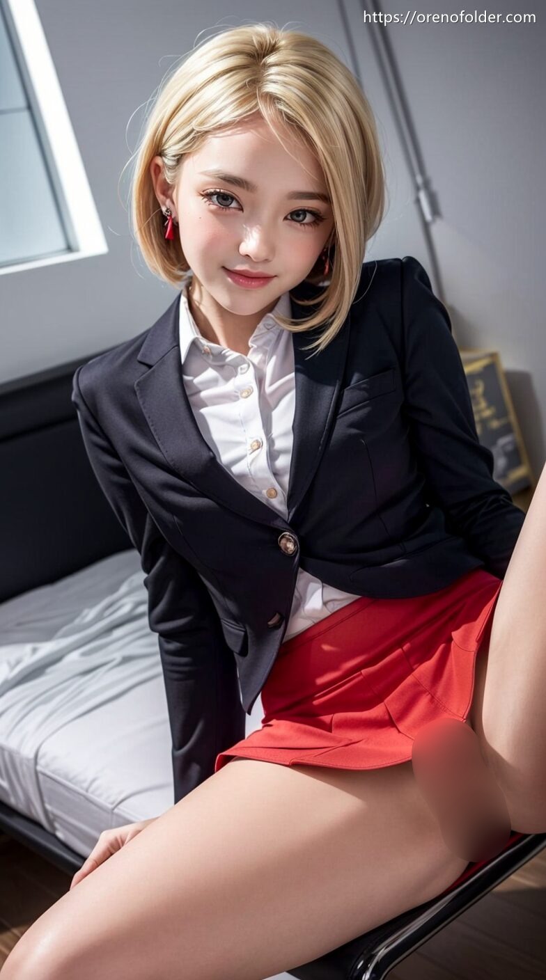 おっぱい, ショートヘアー, スカート, スマイル, トップレス, ヌード, パンチラ, ミニスカ, 半脱ぎ, 太もも, 巨乳, 着衣, 美乳, 金髪, 黒