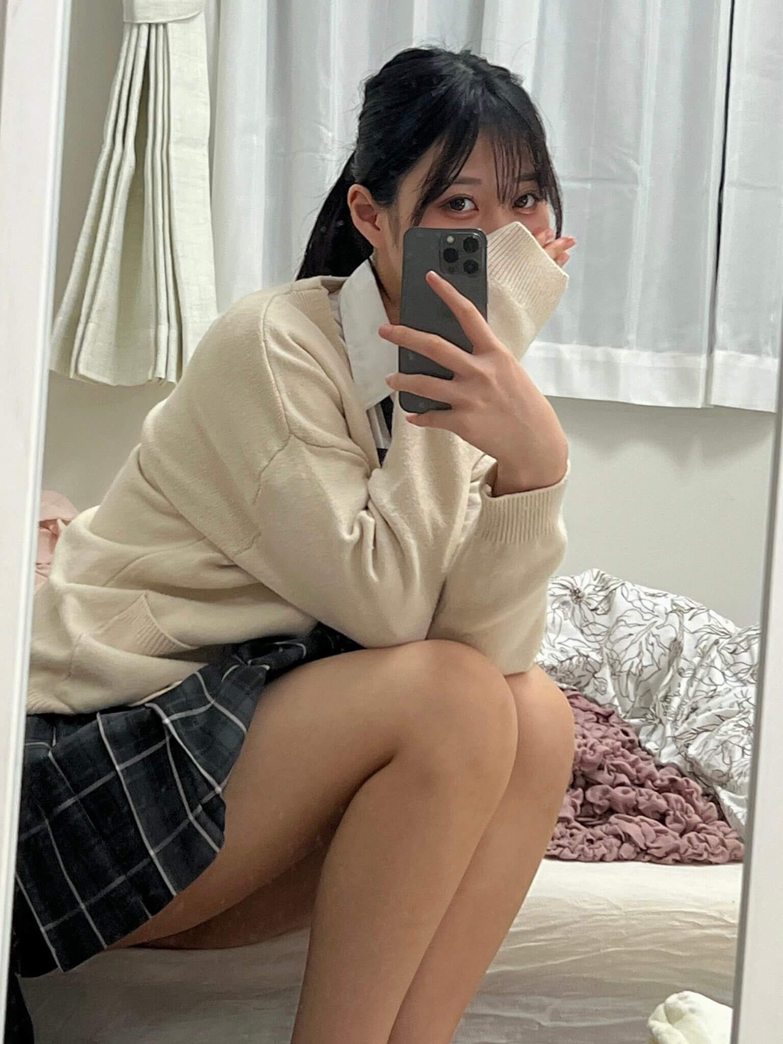 jk, スタンプ, 制服, 太もも, 校内, 生足, 素人, 自撮り, 鏡