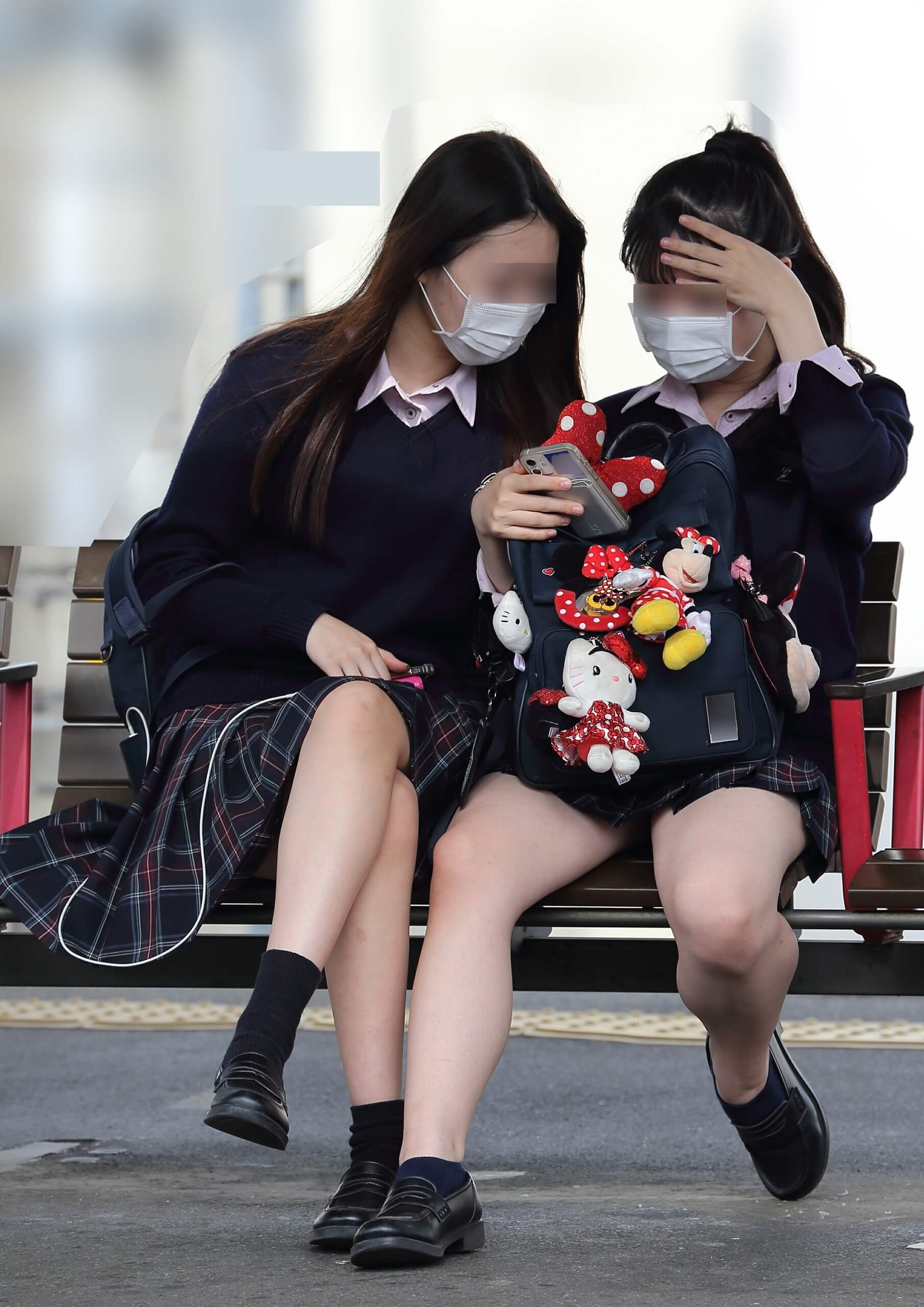 jk,マスク,ミニスカ,太もも,生足,盗撮,脚フェチ,電車,