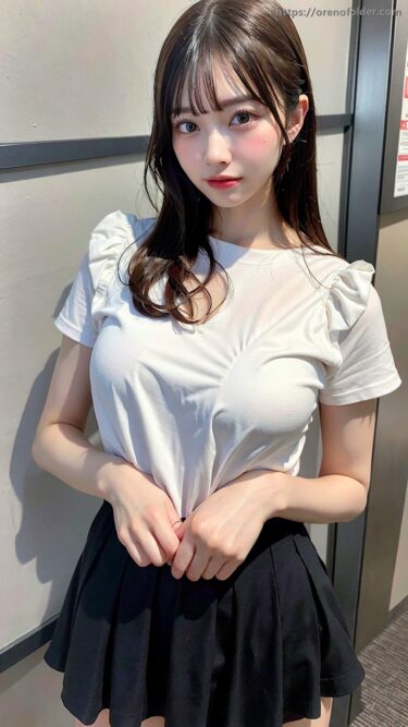 ノーブラ, ハミ乳, プリーツスカート, ミニスカ, ロングヘアー, 巨乳, 座り, 横乳, 爆乳, 白, 着衣, 谷間, 黒, 黒髪