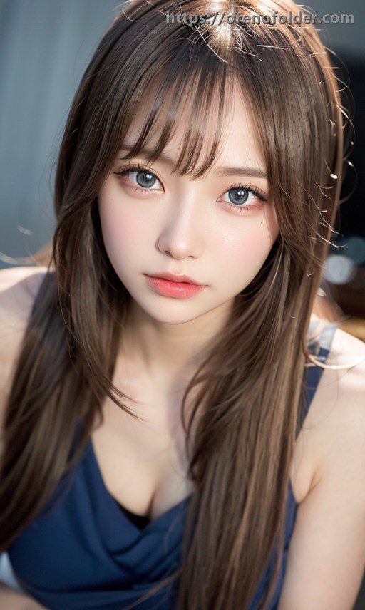 タンクトップ, バストトップ, ロングヘアー, 胸チラ, 茶髪, 谷間, 青