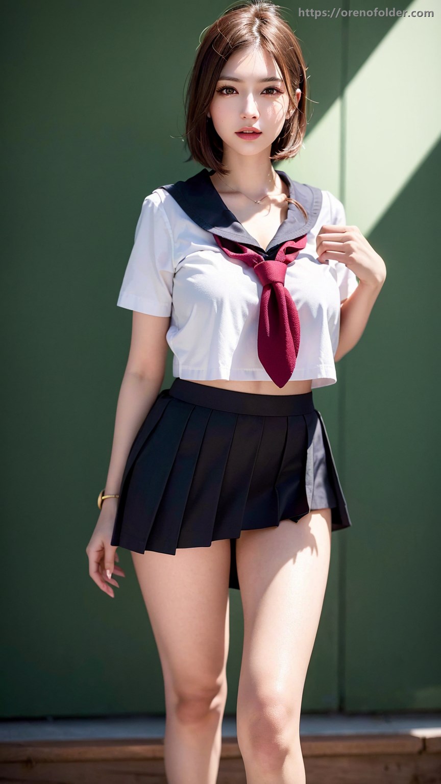 jk, セーラー服, セミロング, ミニスカ, 制服, 太もも, 巨乳, 爆乳, 生足, 着衣, 着衣巨乳, 美脚, 茶髪