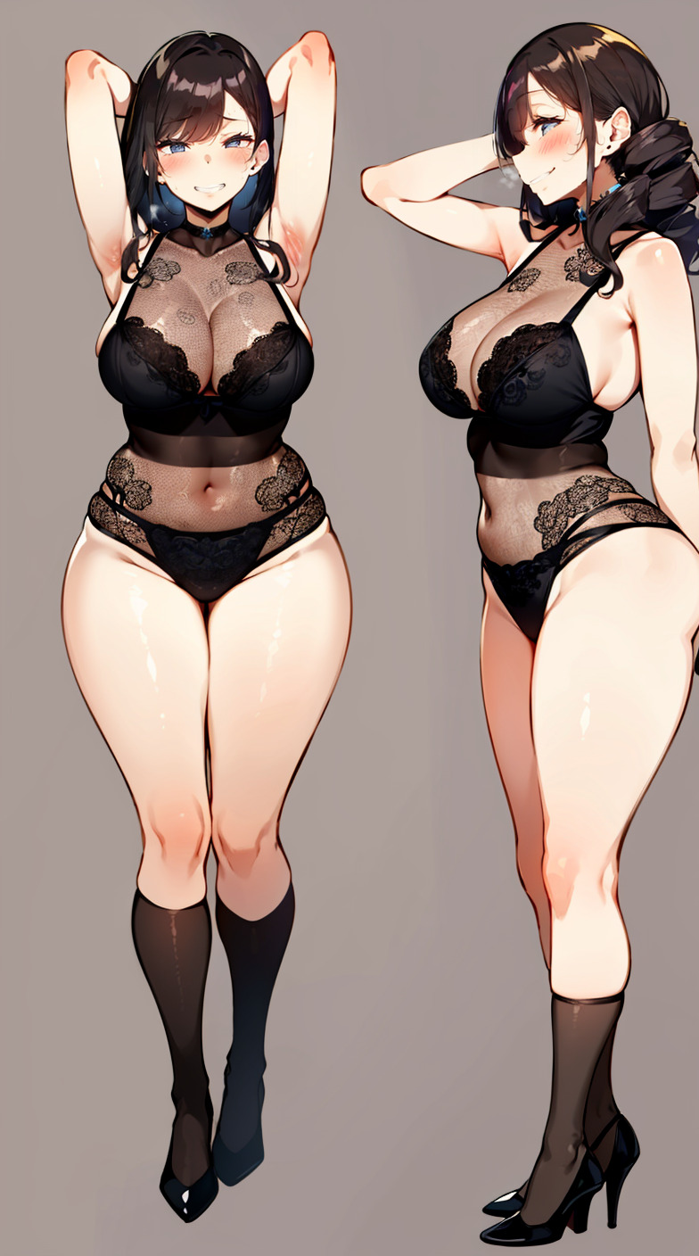 ストレート, 人妻, ミルフ, むちむち, レース, ロングヘアー, 下着, 下着姿, ぱっつん, 巨乳, 妖艶, 微笑, 爆乳, 谷間, 超乳, 黒, 黒髪, 鼠径部