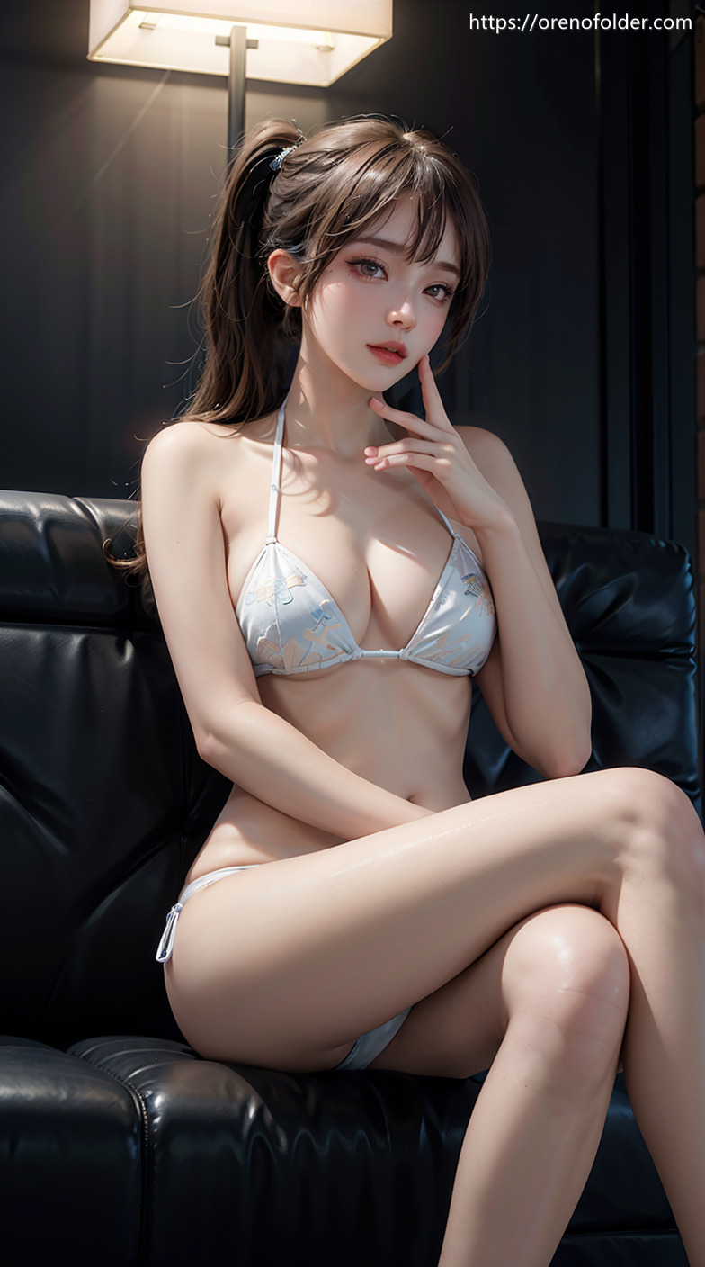 ガーターストッキング, 巨乳, セミロング, チョーカー, ハミ毛, ビキニ, マン毛, 下着, 下着姿, ガーターベルト, 水着, 座り, 爆乳, 茶髪, 血管, 谷間, 陰毛, 青筋, 静脈, 黒